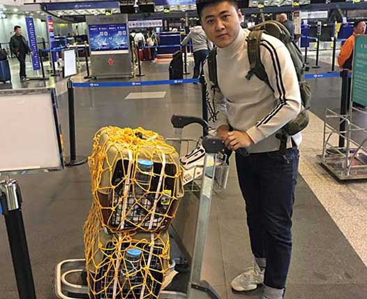 英國斗牛犬(美國——中國)因為成年英牛夏天***怕中暑,專業(yè)的寵物保姆給寶寶航空箱放了冷凍礦泉水瓶來給它降溫。即使長途運輸,寶寶狀態(tài)非常好,在辦公室等待主人接他回家,主人非常滿意,感恩